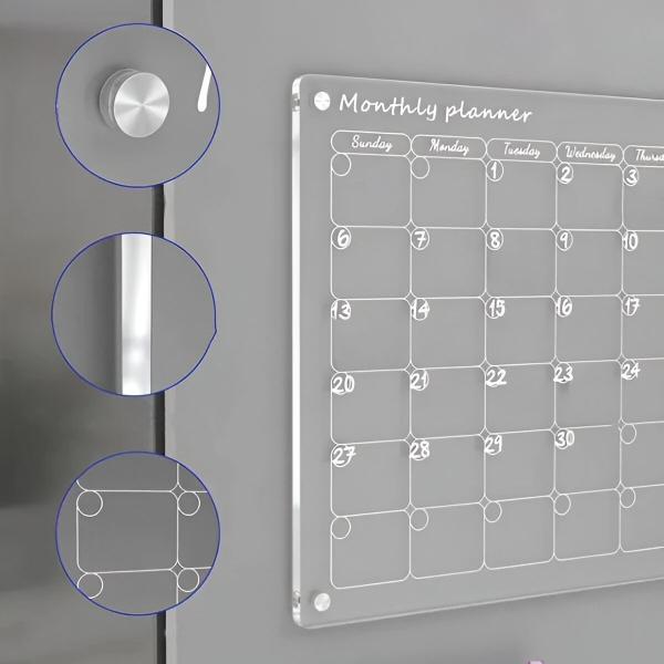 1x magnētiskais akrila mēneša plānotājs (30 cm garums, 40 cm platums)